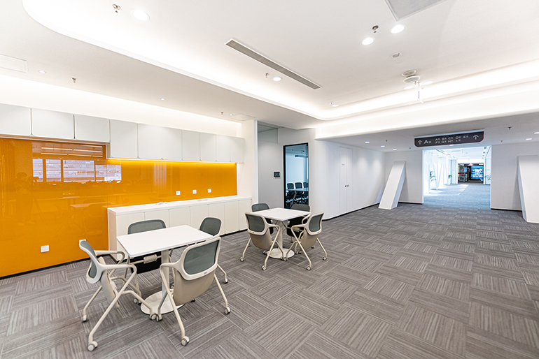 港源裝飾項(xiàng)目團(tuán)隊(duì)深刻理解裝修材質(zhì)及色彩把控對(duì)空間塑造的重要性,在施工過(guò)程中靈活運(yùn)用漸進(jìn)色、反差跳色,在以尚白為基礎(chǔ)色調(diào)的辦公區(qū)域,通過(guò)背漆玻璃的青白、木飾面固裝和無(wú)機(jī)涂料的乳白、鋼板天花的啞光白、鋁板飾面的雪白、瓷磚的米白,在簡(jiǎn)約中和諧地創(chuàng)造了豐盈的立體視覺(jué)享受,規(guī)避了呆板單一的視覺(jué)效果,創(chuàng)造了一個(gè)層次遞進(jìn)的白色美學(xué)空間。