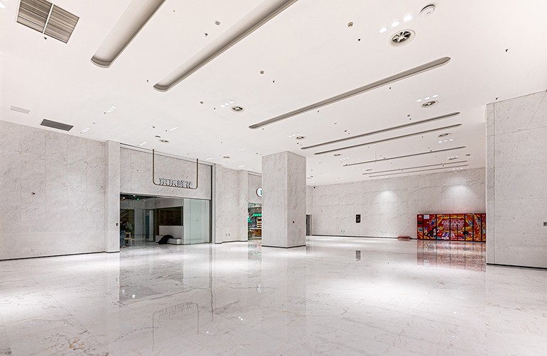 京東集團(tuán)總部二期的地下一層訪(fǎng)客大堂結(jié)構(gòu)挑高9米,大堂周邊墻體大部分二次結(jié)構(gòu)為連鎖砌塊砌筑,且結(jié)構(gòu)受力復(fù)雜。港源裝飾項(xiàng)目團(tuán)隊(duì)經(jīng)過(guò)多方溝通及計(jì)算預(yù)排版,決定采用穿墻螺栓預(yù)焊接、墻體雙側(cè)對(duì)應(yīng)布設(shè)埋板、局部連鎖砌塊灌注混凝土等綜合方式進(jìn)行鋼架龍骨焊接埋板的固定,以此規(guī)避了連鎖砌塊墻無(wú)法承重的缺陷,不僅避免增加甲方成本,也為大堂大空間墻面石材干掛的安全、穩(wěn)定加上一道“雙保險(xiǎn)”。
